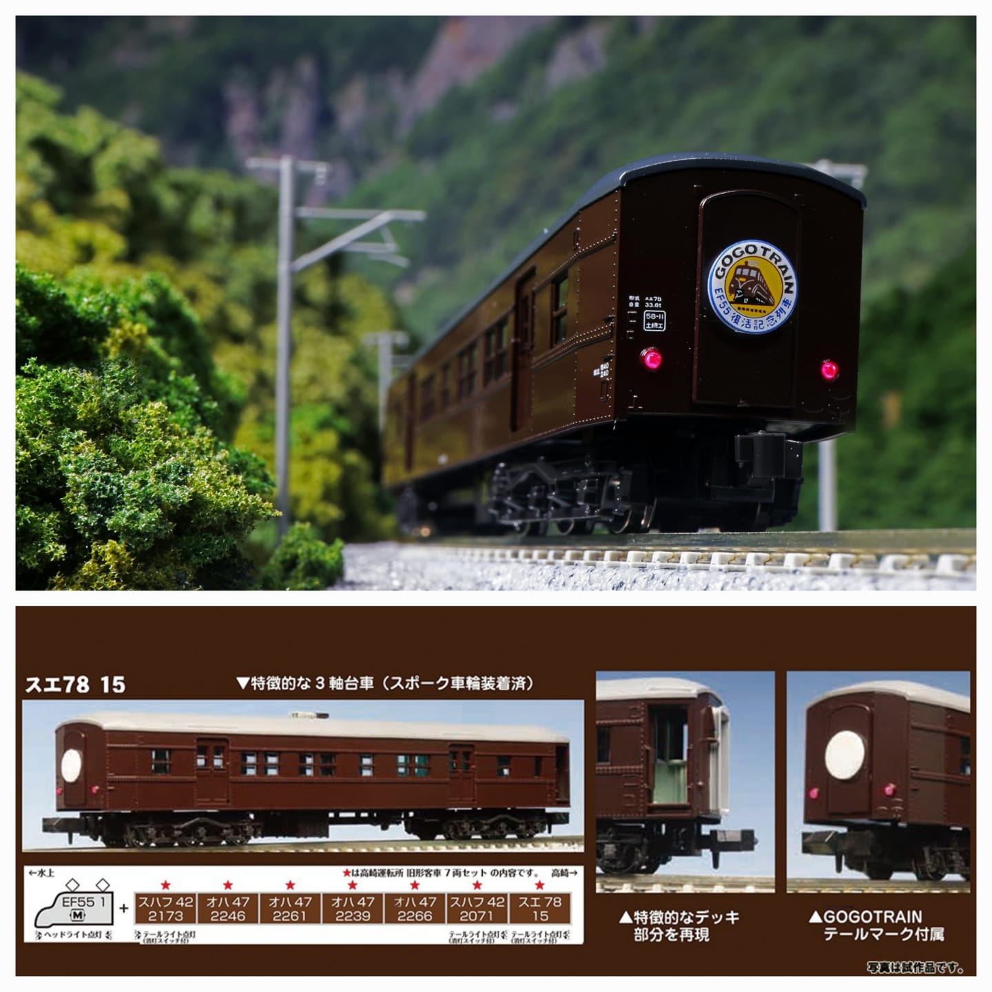 特別配件: 附贈 EF55 復活紀念列車「GOGO TRAIN」專用尾牌及反光板。