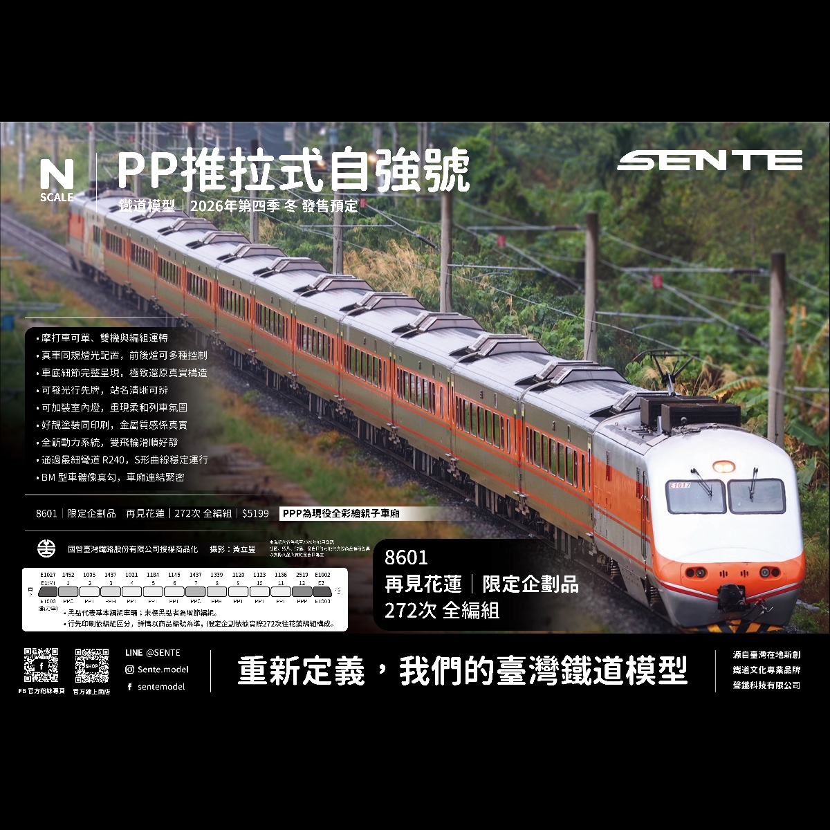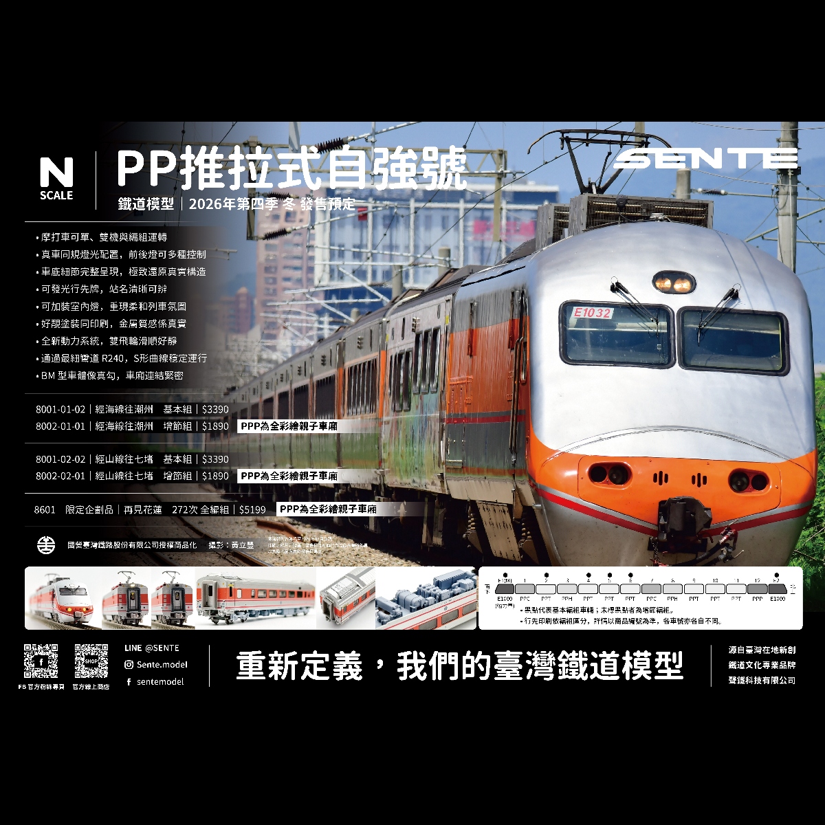 <新品預訂> ◤SENTE 聲鐵◢ PP推拉式自強號 六兩基本組 / 增節組|2026年第三季 秋 發售預定
