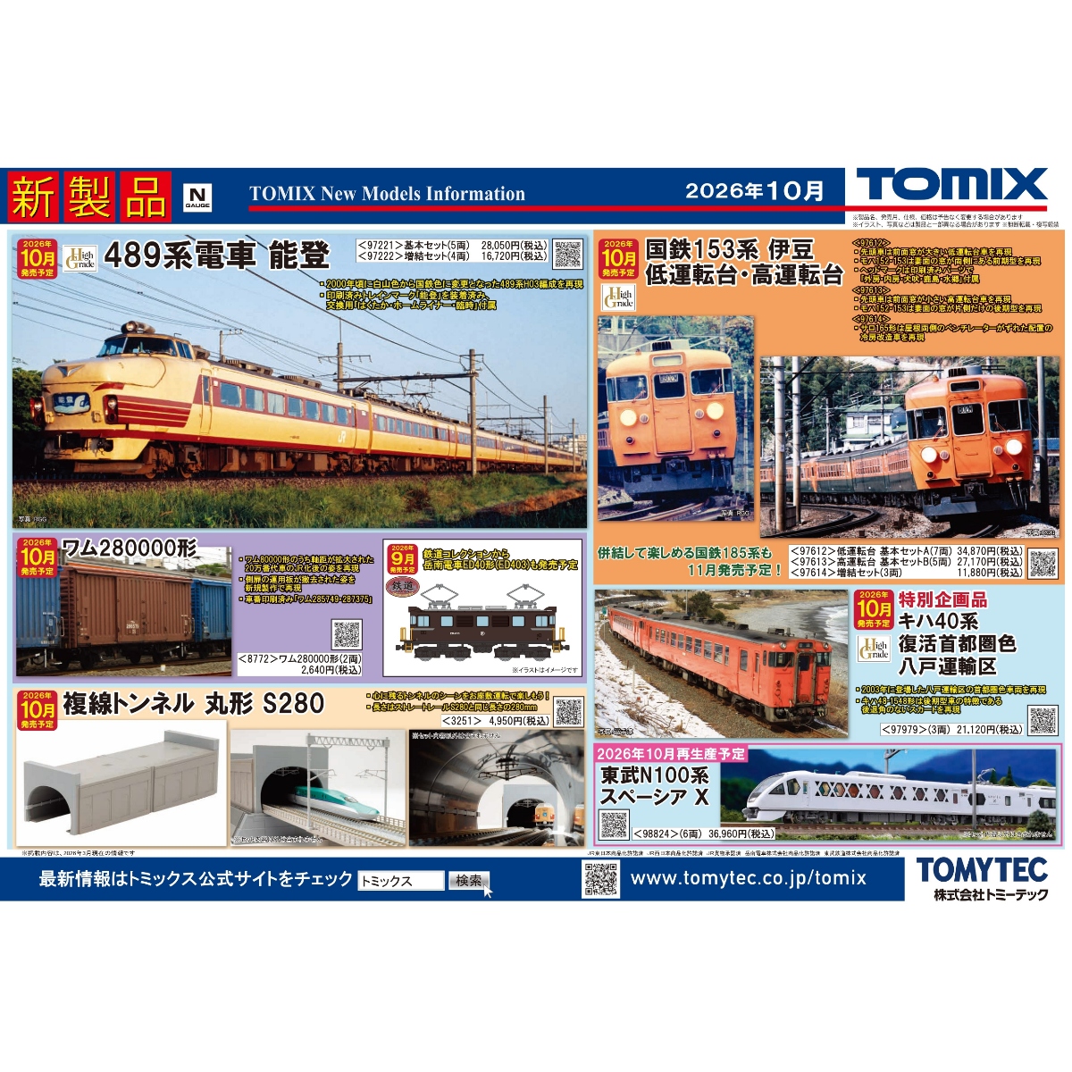 | 97221 | JR 489系電車(能登)基本セット | 2026年10月 | $1,020 |