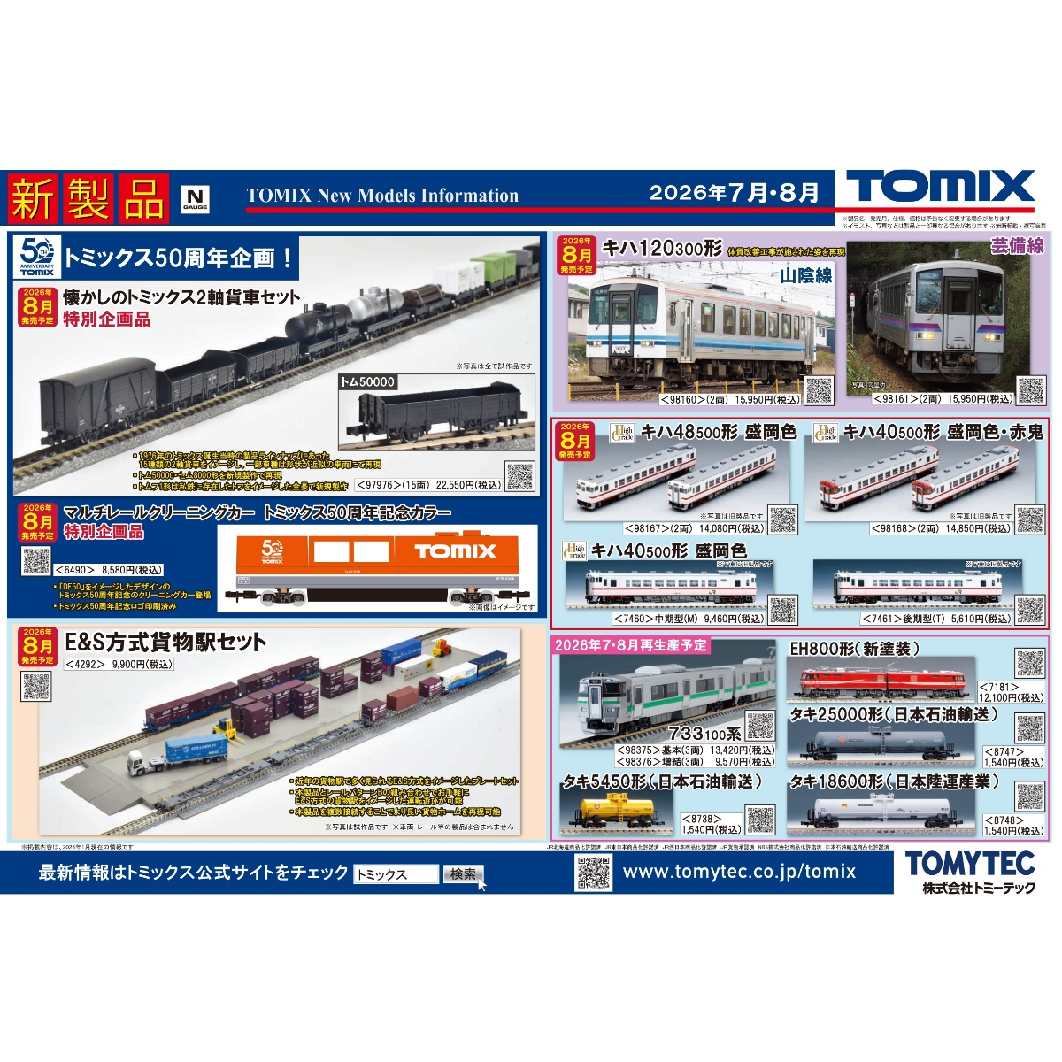 | 6490 | 特別企画品 マルチレールクリーニングカー(トミックス50周年記念カラー) | 2026年8月 | 預計售價港元 | $362 |