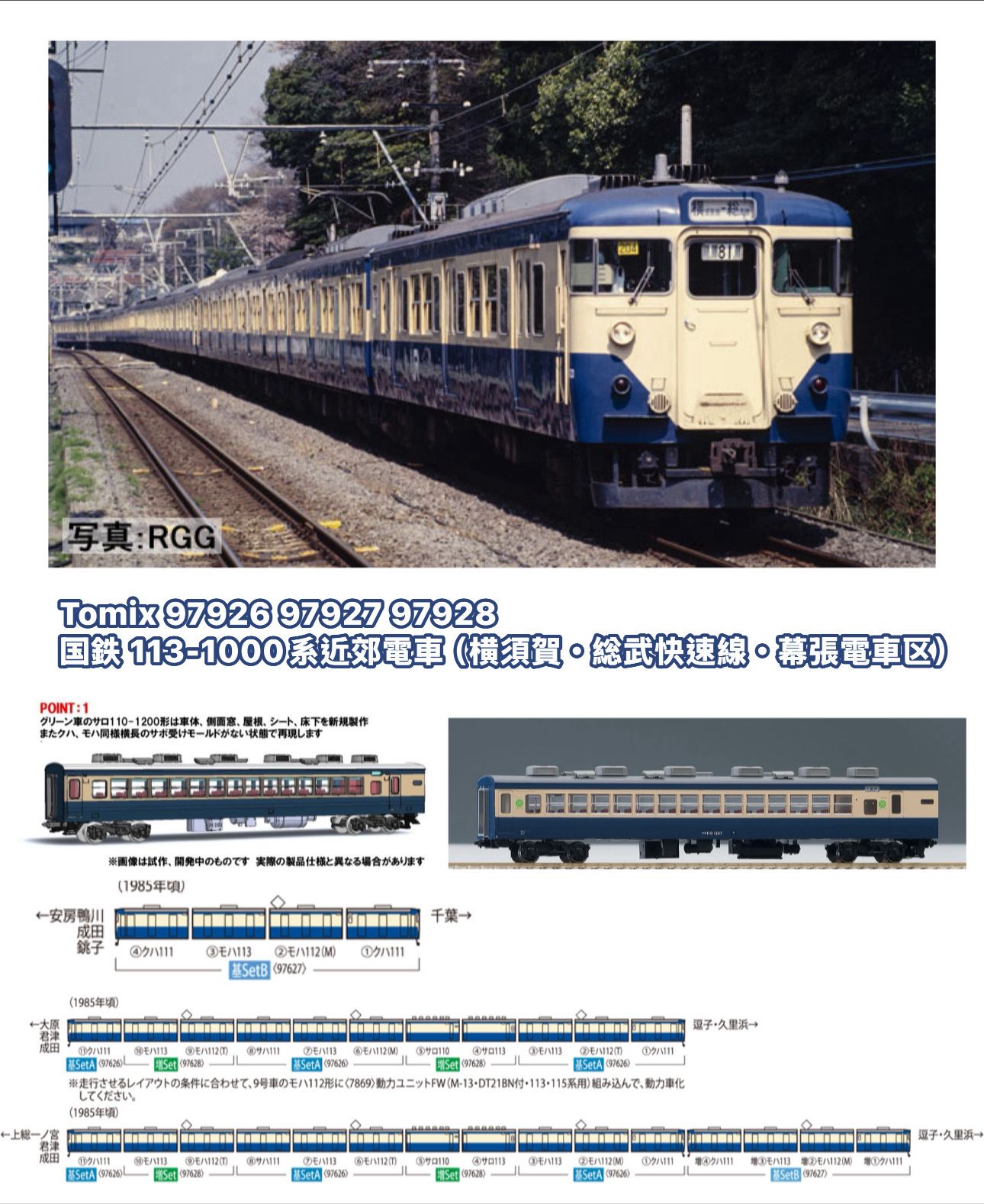 TOMIX 97626 97627 97628 国鉄 113-1000系近郊電車(横須賀・総武快速線・幕張電車区)